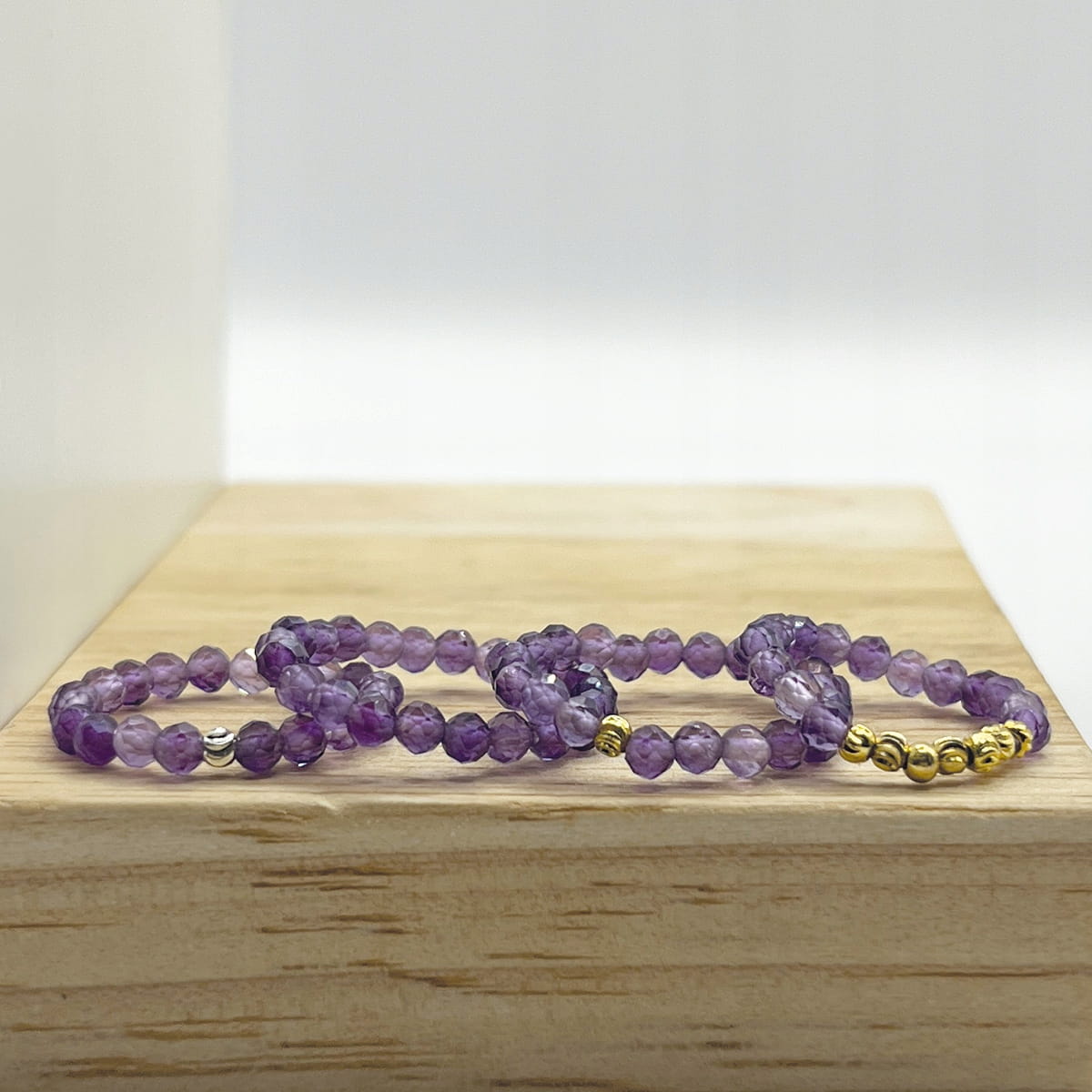 AMETYST Pierścionek fasetowany na gumce 3mm