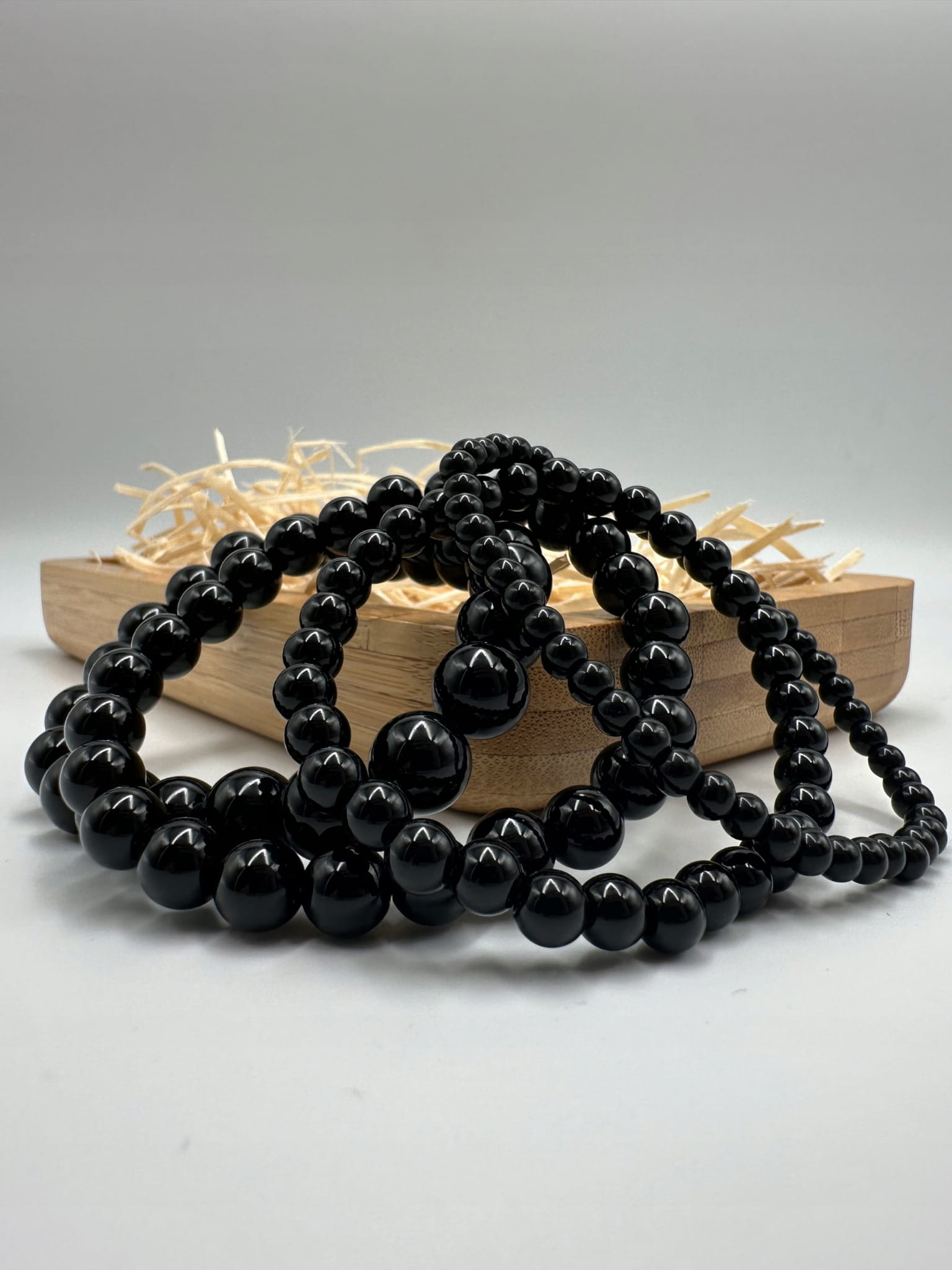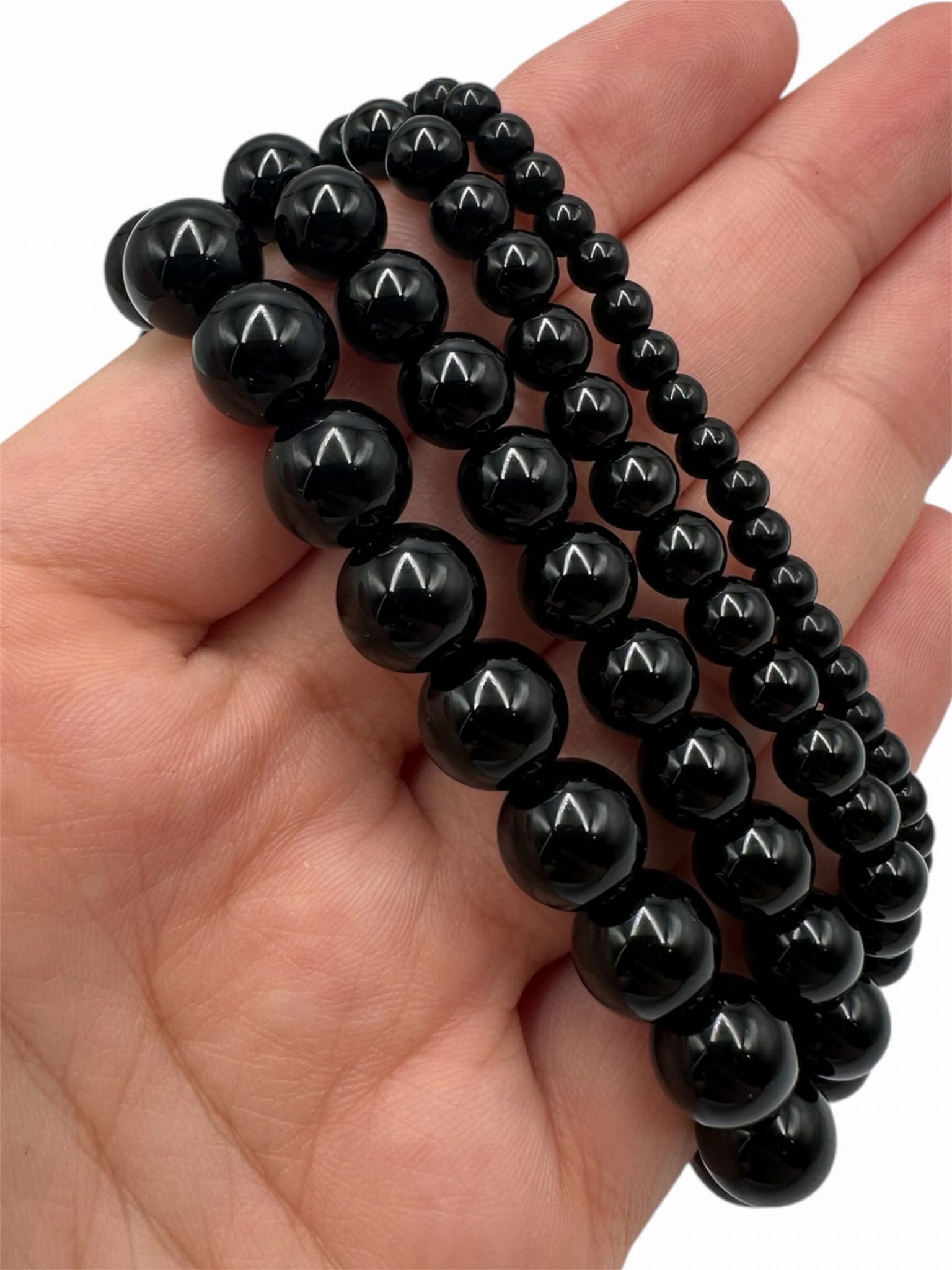 CZARNY TURMALIN Bransoletka na gumce 6mm