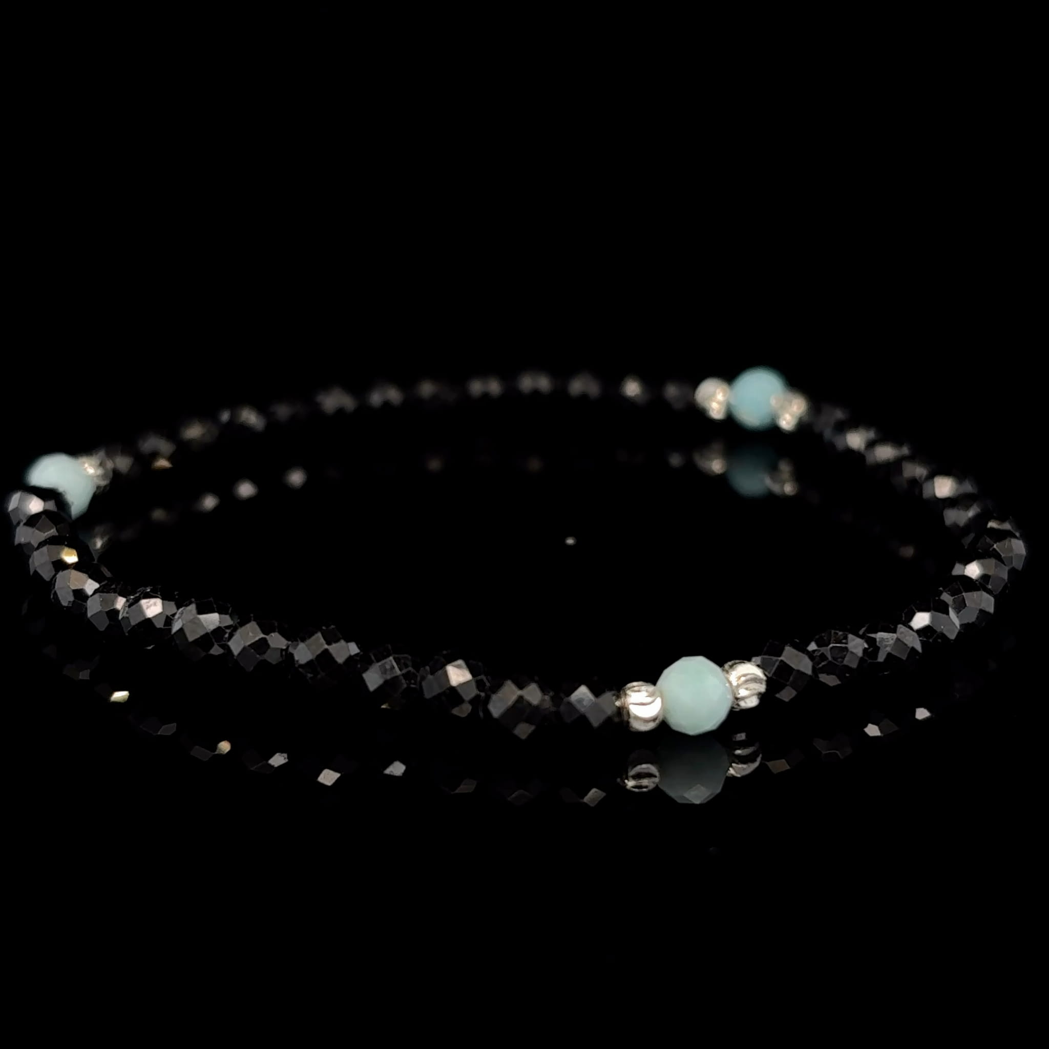 CZARNY TURMALIN/LARIMAR Bransoletka fasetowana/4mm/na gumce /elem. srebrne