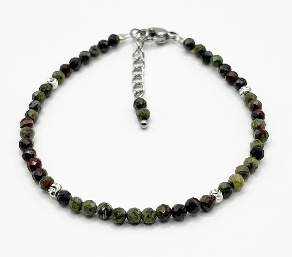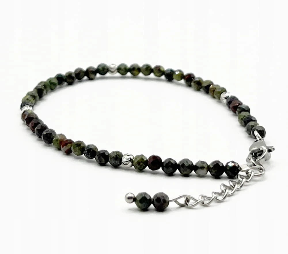 JASPIS SMOCZA KREW Bransoletka fasetowana ze srebrnym stalowym zapięciem 3mm