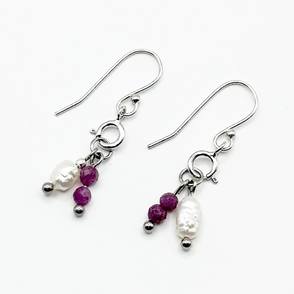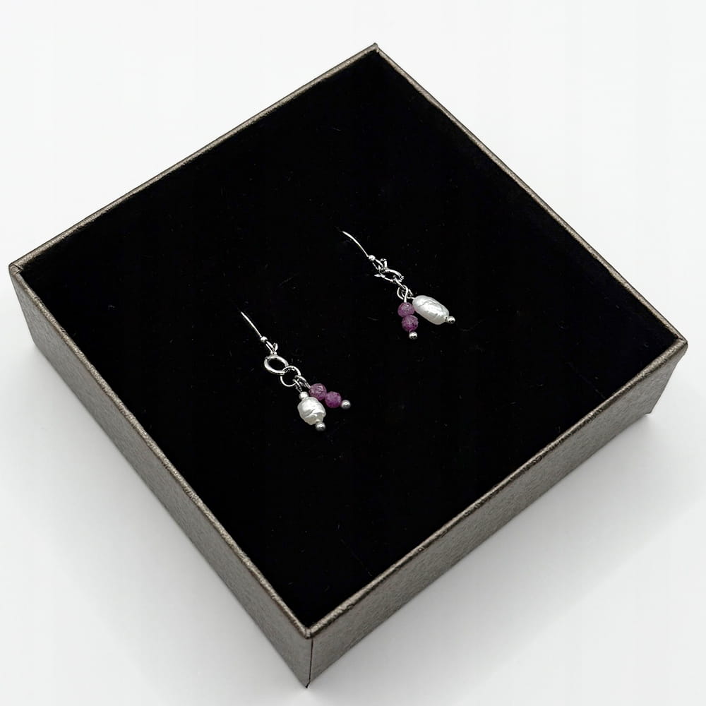 RUBIN | PERŁA Kolczyki na biglu otwartym ze srebra 925