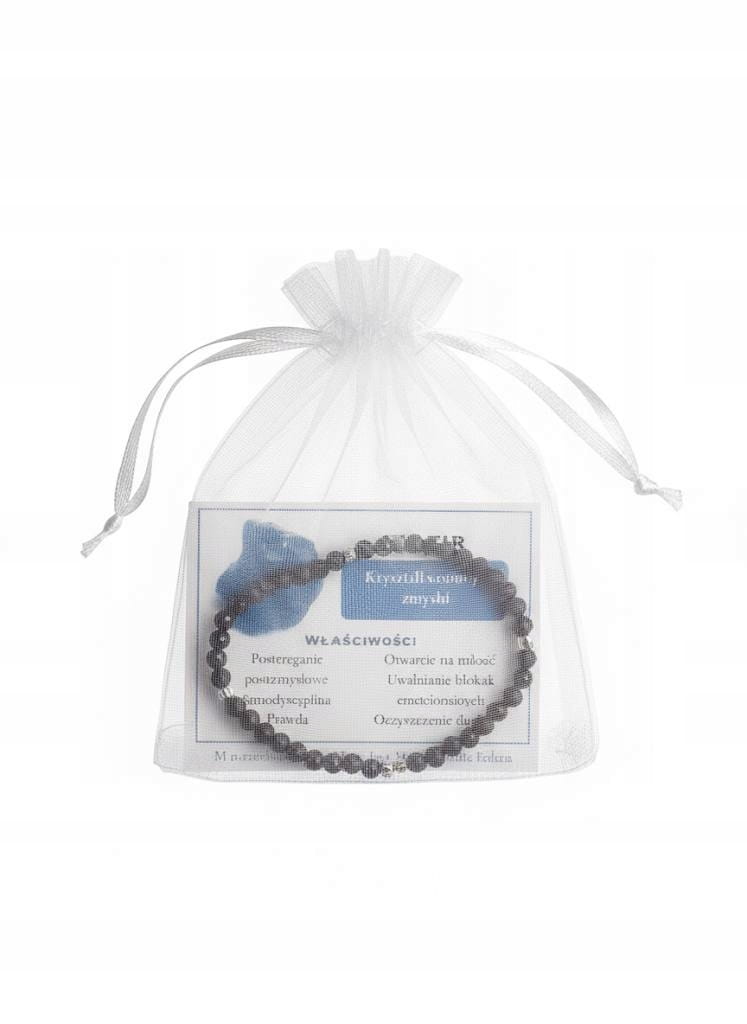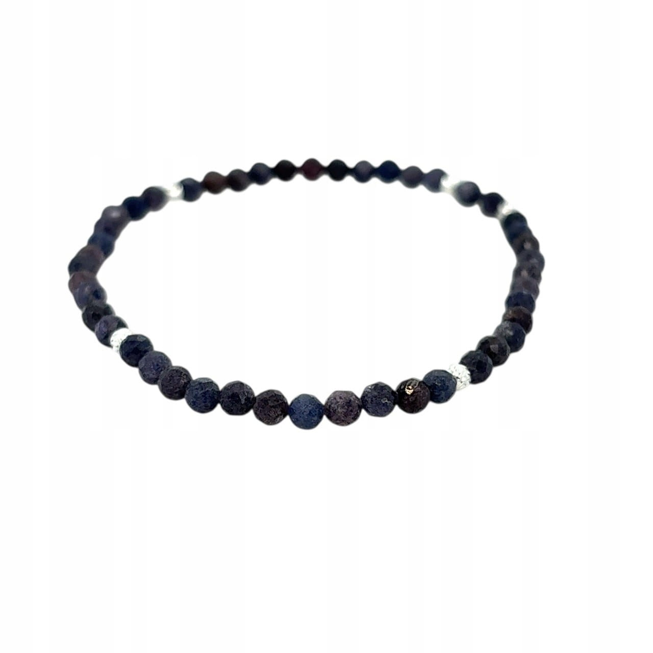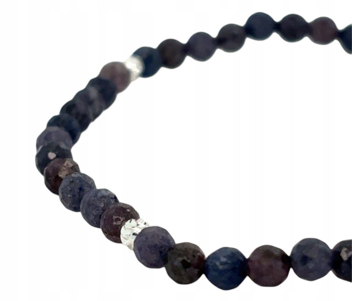 SZAFIR / Bransoletka fasetowana / ze srebrnymi detalami na gumce 3mm